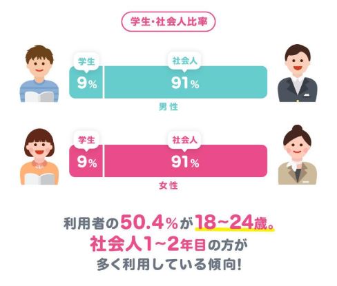 公式のデータが少し前(2017年8月)になりますが、半数が18歳~24歳となっています。